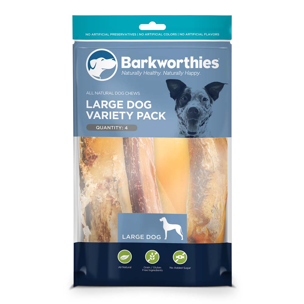 Barkworthies has assembled our best-selling, premium all-natural chews that are perfect for your big dog! The Large Breed Variety Pack contain favorites like bullies, bones, ears, and scapula, all of which have been sized appropriately for your companion. The Barkworthies Large Breed Variety Pack contain products that vary in chew durations and textures to ensure your dog is satisfied while supporting positive dental health with active chewing.