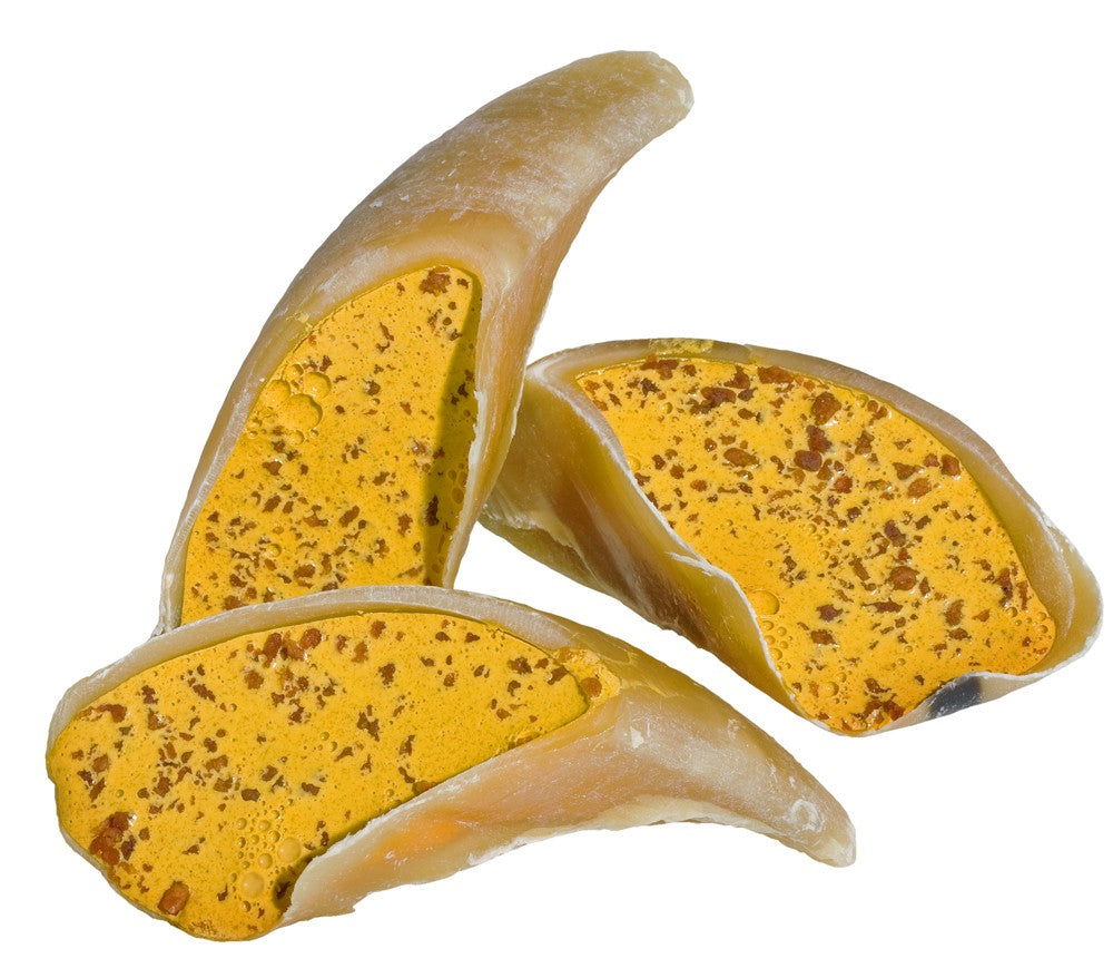 Natural beef hooves are trimmed roasted and stuffed with our tasty cheese filling.to produce this enticing treat. Beef Hoof. Fill Inch g Corn Syrup, Water, Chicken Meal, Sugar, Chicken Fat (preserved with Mixed Tocopherols), Salt, Propylene Glycol, Agar Agar, Bacon Bits (Textured Vegetable Prote Inch , Vegetable Oil, Salt, Natural Flavor, Hydrolyzed Yeast, Hydrolyzed Vegetable Prote Inch , Dextrose), Vegetable Glycer Inch , Cheese Flavor, Titanium Dioxide Color, Potassium Sorbate (a preservative), Citric Acid, Lecith Inch , Natural Bacon Flavor, Sodium Benzoate (a preservative), Yellow 5, Yellow 6. "