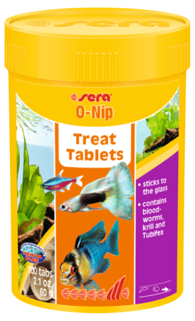sera O-Nip is the delicacy consisting of carefully manufactured tablets that can be attached to the aquarium glass by slight finger pressure. This allows for watching even shy fish excellently while they are eating.