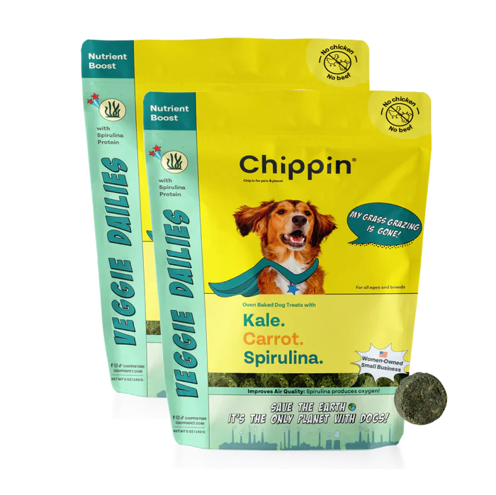 Veggie Delight Doggie Treats - Boost your pup's health with our plant-based Vegan Nutrient Boost. Say goodbye to grass-eating habits and hello to fresh puppy breath! Made with wholesome ingredients like Oats, Flaxseed, Carrots, Kale, and Spirulina, these treats are a delicious fusion of nutrition and taste. Guaranteed Analysis: Protein (min) 15% Fat (min) 15% Fiber (max) 3% Moisture (max) 8% 18 kcal per treat. Veterinarians recommend treats as only 10% of daily calories. But there's more! Spirulina helps improve air quality by absorbing CO2 emissions. Choose Veggie Delight Doggie Treats for a sustainable and nutritious snack that benefits your pup and the planet.
