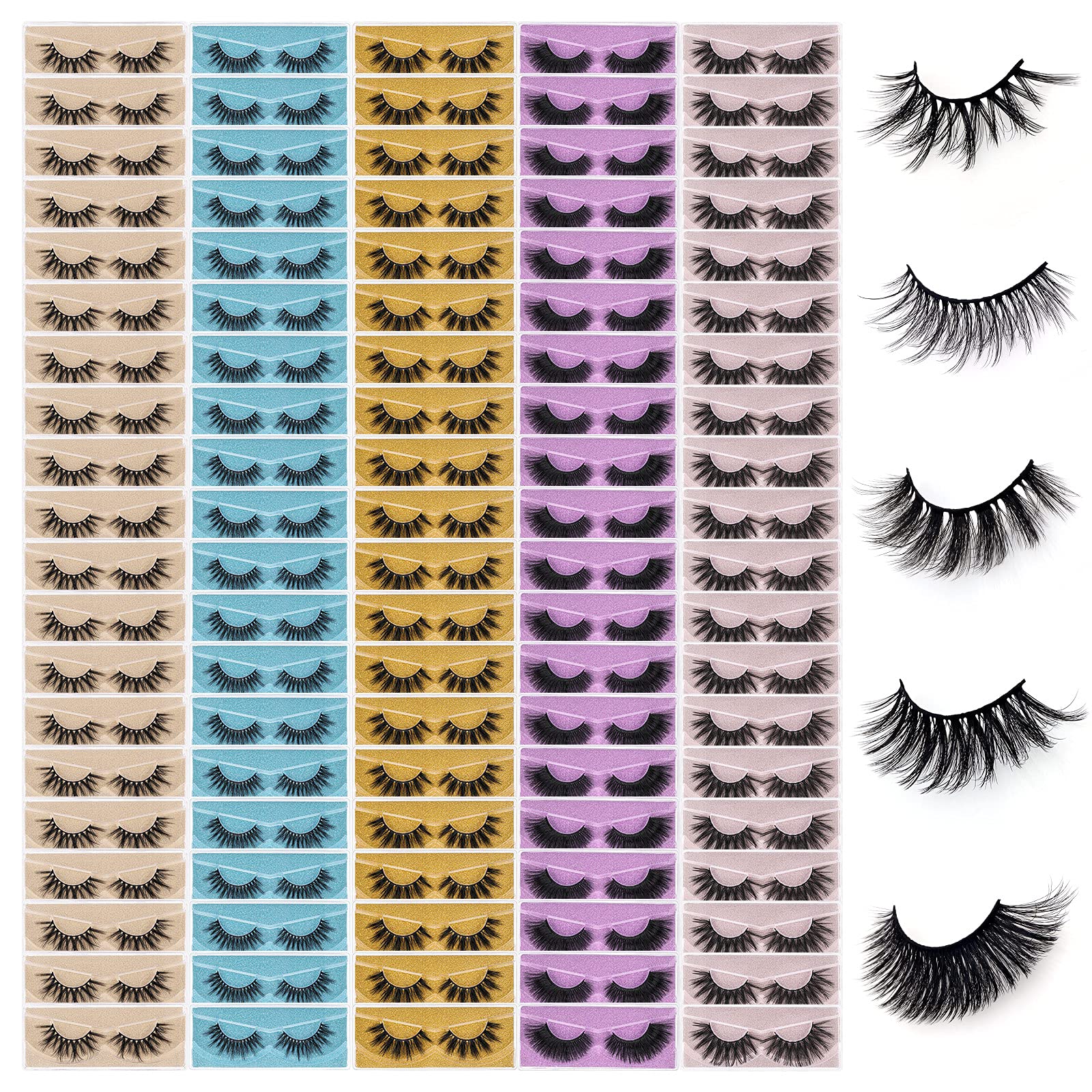 Wholesale Mixed Lashes Pack 3D Faux Mink Eyelashes 5 Style 100 Pairs Fluffy Volume Natural Charming Look Medium Length Eyelashes Cotton Band Handmade Reusable Soft False Eyelashes (5 styles-100 pairs)